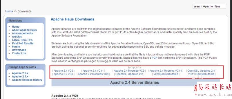 5、打開ApacheHaus之后你會發現這個網站上有各種windows版本,可以盡情選擇你要下載的版本。
