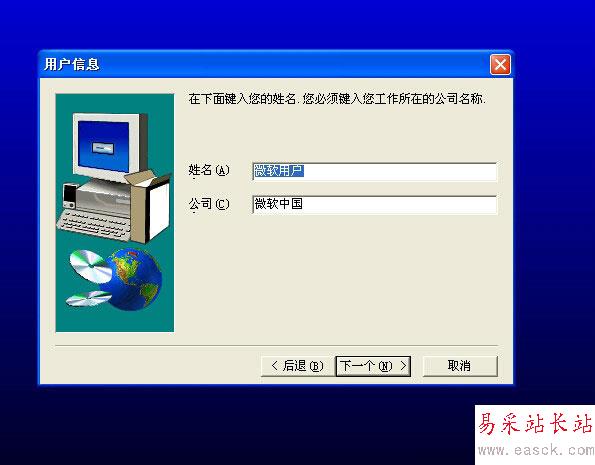 7、用戶信息界面可以根據(jù)實際真實填寫,也可以使用默認信息,然后點擊下一個并確認用戶信息是否正確,如果正確點擊“是”繼續(xù)安裝。