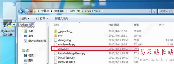 2.然后打開Eric6目錄(解壓后應該是eric6-17.03.1),找到install.py,雙擊進行安裝或者直接將它拖動到python快捷方式也能安裝。