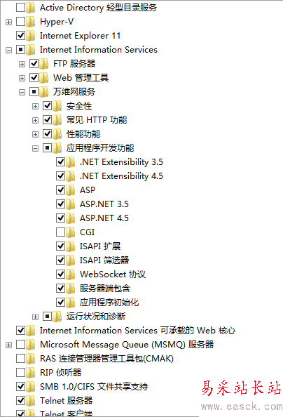 這時候我知道了是Web調試器沒有啟動,但是卻不明白為什么。于是檢查IIS8.5的安裝情況,把一些可能需要安裝的都給裝了。
