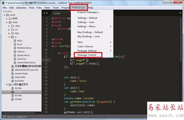 2、點擊“preferences”——“package control”準(zhǔn)備插件包各項操作;