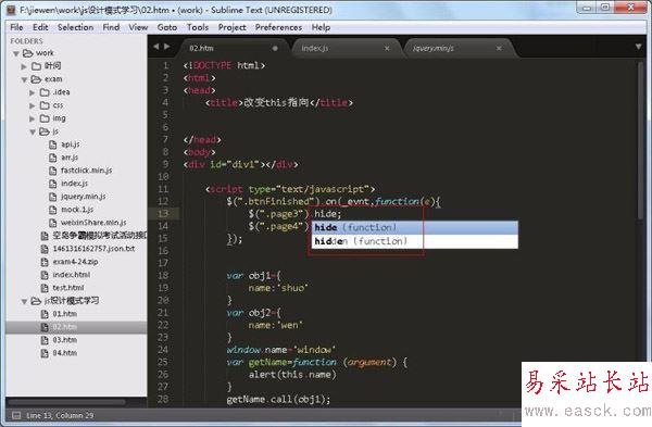 8、重新打開頁面,輸入函數(shù)方法名,就會出現(xiàn)智能代碼提示了。