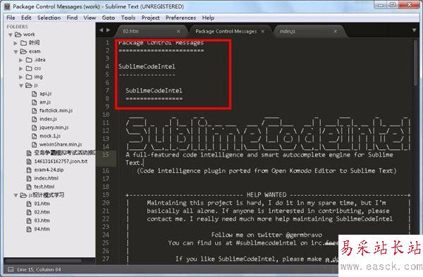 4、在輸入框中輸入“sublimecodeintel”,出現(xiàn)提示,點選立即進(jìn)入安裝;