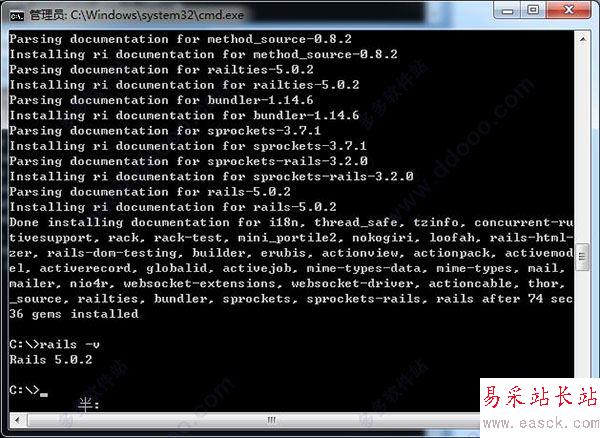 7.之后輸入“rails -v”即可看到版本,如下圖所示,小編的版本為5.0.2。