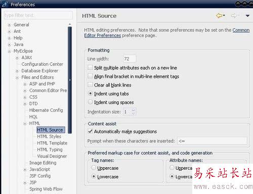 1、Window -> Preferences -> MyEclipse -> HTML -> HTML Source;