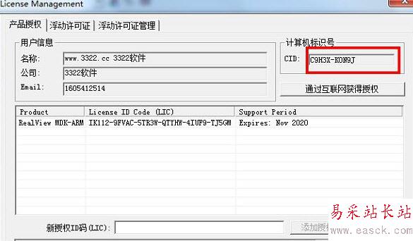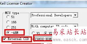 3、打開破解文件中的注冊機“Keil UV3 注冊機”,勾選-APM,然后勾選“external cid....”將復制的CID號復制到其中,最后點擊generate,將得到的id復制