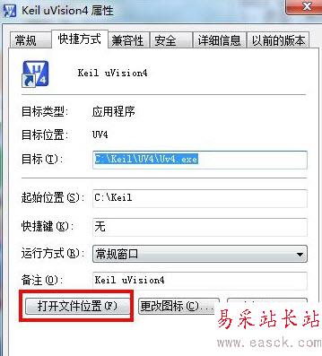 1.鼠標右鍵點擊keil uvision3面快捷方法,然后點擊屬性
