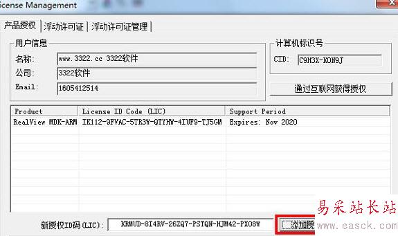 4、然后將其復制到如下圖,點擊“添加授權”,出現下圖標示的地方即表示破解完成,可以使用到2025年。過期了可以按照這個方法重新破解