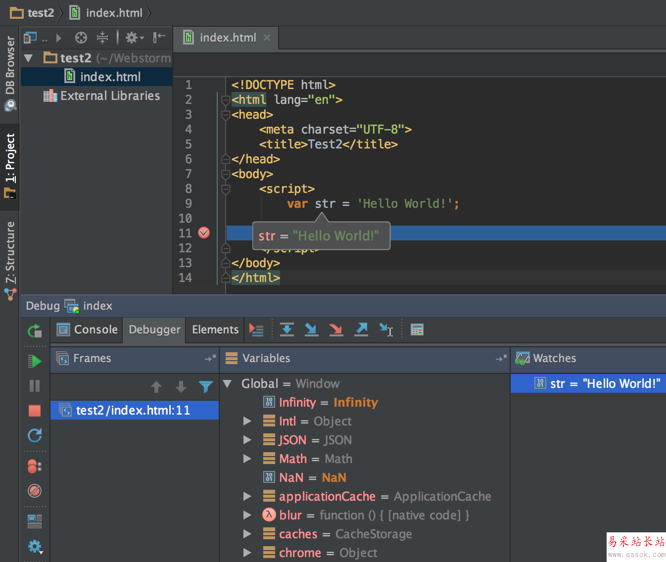 WebStorm這邊應該是已經(jīng)斷點,并且可以進行調試了