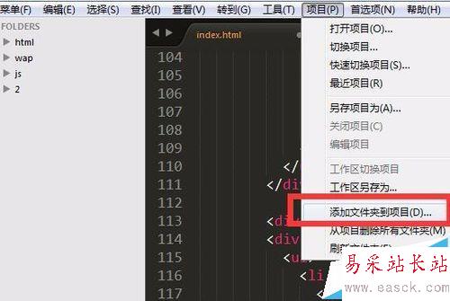 1、sublime如何新建工程、項目的。第一可以直接把一個或者多個工程拖到左側FOLDERS文件夾管理界面;第二可以打開:項目->添加文件夾到項目。