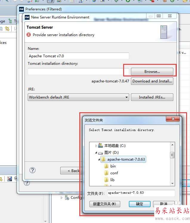 4、選擇自己的tomcat并選擇自己的jre運行版本,然后finish就好,然后一直“確定”下去。