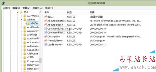 3、在打開注冊表,找到HKEY_LOCAL_MACHINE → OFTWARE →Wow6432Node →Microsoft →VisualStudio →11.0 →VMDebugger.Connect雙擊打開