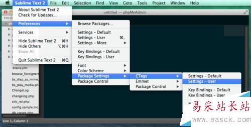 7、打開(kāi)菜單在Preferences(設(shè)置)菜單中打開(kāi)Package Control(插件管理器)settings->ctags->settings-user和settings-default
