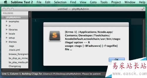 [Errno 1] /Applications/Xcode.app/Contents/Developer/Toolchains/XcodeDefault.xctoolchain/usr/bin/ctags: illegal option -- R