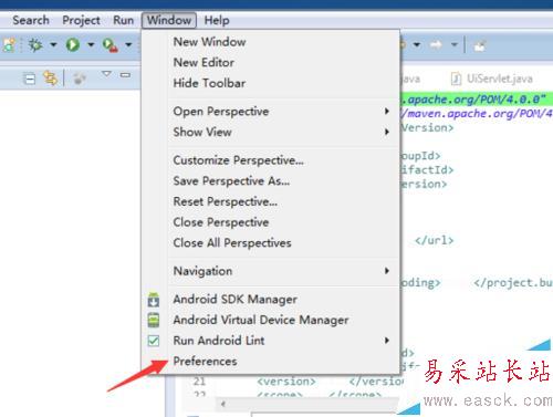 2、彈出了下來菜單中進(jìn)行選擇為prefernces的選項(xiàng)菜單。