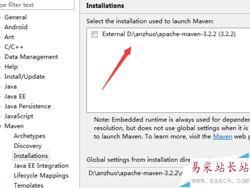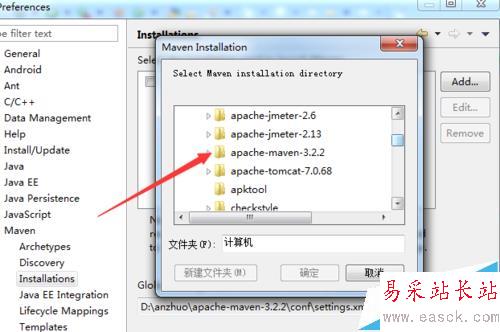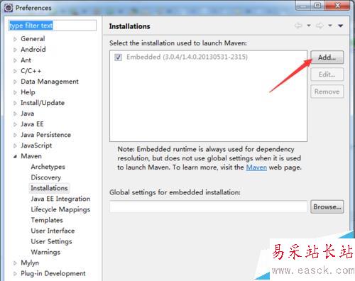 3、在左側(cè)的列表中選中為maven的選項(xiàng),進(jìn)行點(diǎn)擊installations的選項(xiàng),進(jìn)行選中為add的添加。