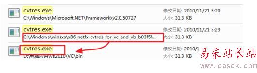 1、首先我們在我的電腦界面搜索cvtres.exe這個可執行文件,如下圖。如果您的電腦安裝了vs2010,那么一般都是能夠搜索出不止一個此文件的。