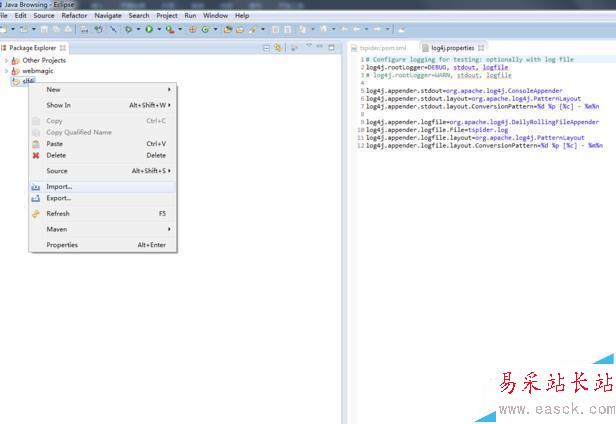 5、導入新項目。選擇新建的working set,單擊右鍵,選擇Import,導入一個新項目。