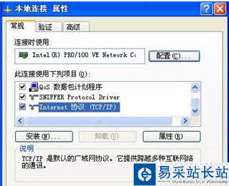 C. 在隨后打開的窗口里,先選擇Internet協議(TCP/IP),再用鼠標點擊“屬性”。