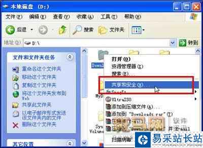 如圖6,打開資源管理器,右擊需要共享的文件夾,選擇“共享和安全”命令。