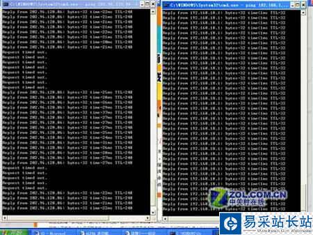 其公司的接法是:申請的2M寬帶線經過ADSL以后接路由器的WAN口,路由器下端的四個LAN口中分別拔接了四臺商用電腦。由此看來接法上并沒有錯誤。由于客戶說平均每小時會掉四五次線,也就說每十多分鐘會有一次掉線情況,針對此原因。我先用局域網中的一臺電腦進入路由器的WEB界面。它用的是PPPOE拔號上網,路由器也能動態的獲取到電信的DNS 及IP. 且路由器中的其它基本設制都正常,為了更進一步的搞清楚掉線的原因, 我采用PING功能:由一臺電腦同時連續PING電信的DNS及路由器網關。
