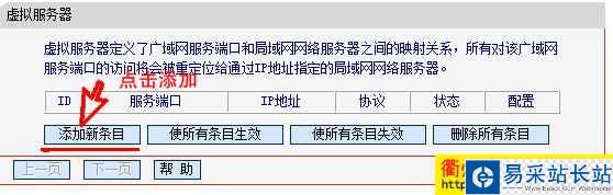 2、在右側“虛擬服務器”頁面中點擊“添加新條目”