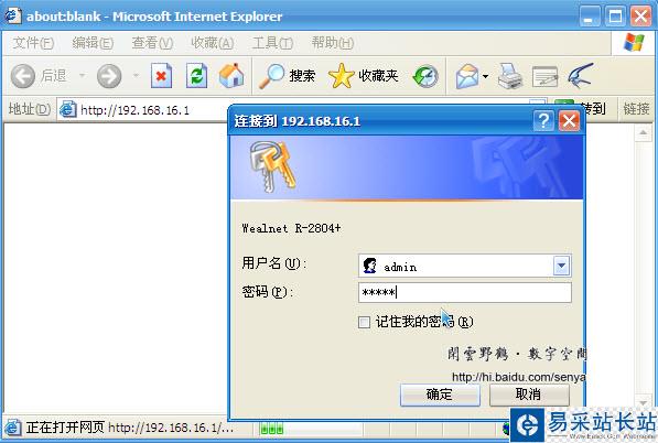在地址欄內輸入http://路由器的IP地址,如http://192.168.1.1,如果正常連接,則會打開登錄對話框: