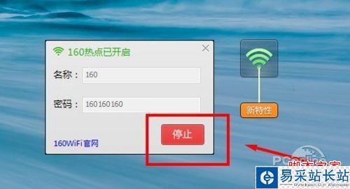 第一次啟動160WIFI的時候,可以在桌面右上角的地方看到的類似WIFI LOGO的懸浮窗。點擊一下這個160WIFI的懸浮窗,就會彈出一個160熱點的設置窗口,自己隨意輸入名稱和密碼即可!