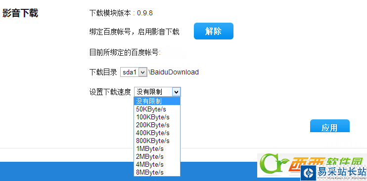 綁定后可以選擇在進行路由遠程下載時的下載速度上限