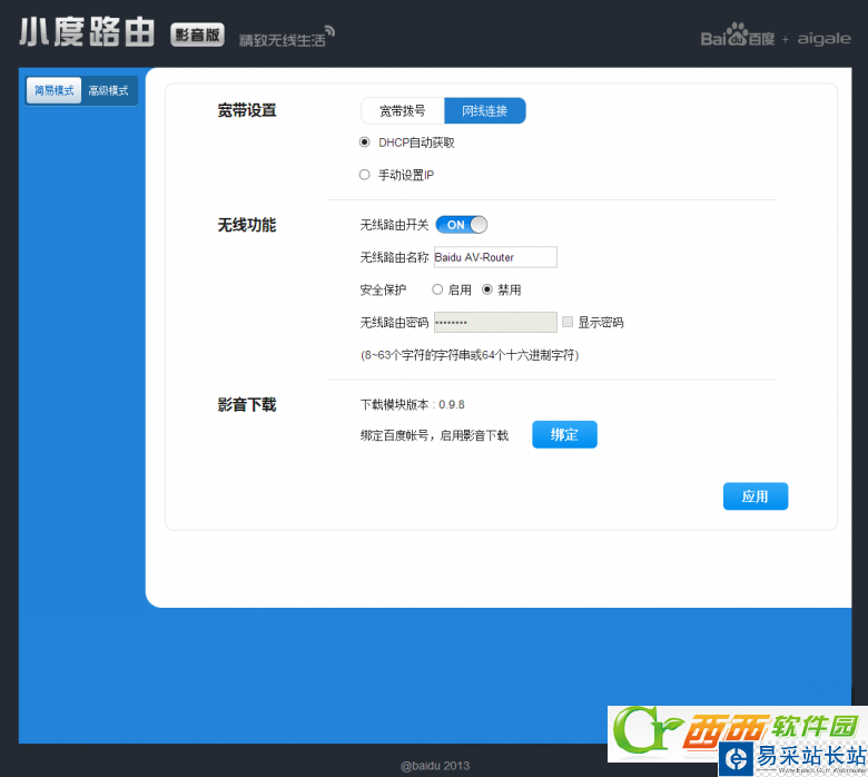 簡易模式可以設置路由模式下上網方式,還有無線的SSID和密碼。