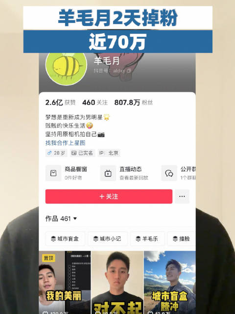 網紅“羊毛月”粉絲掉破800萬 吐槽