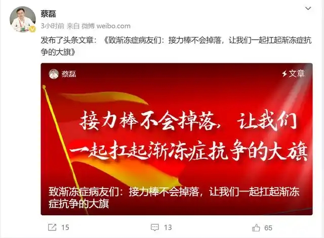 蔡磊稱四肢已基本癱瘓:2025,接力棒不