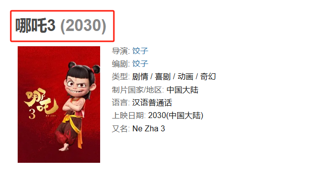 《哪吒3》計(jì)劃上映時(shí)間又改回2028