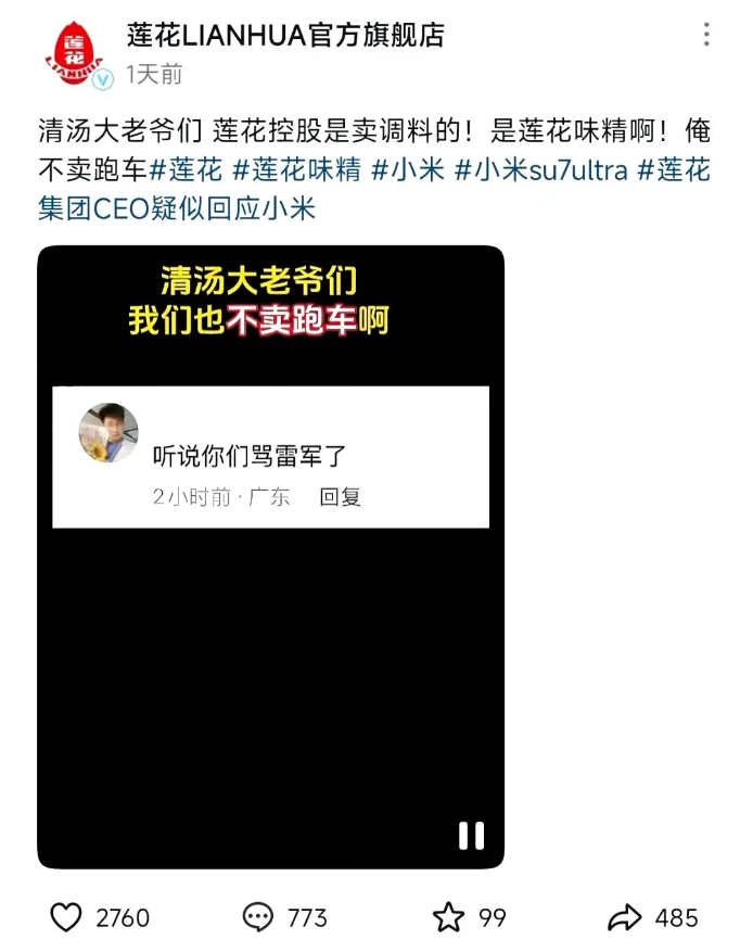 無辜“躺槍”!蓮花味精因小米汽車被