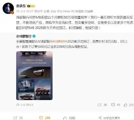 問界M8六小時(shí)小訂破2.1萬臺(tái) 預(yù)售價(jià)