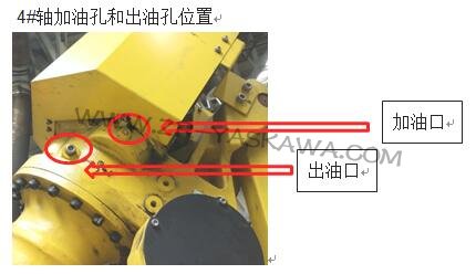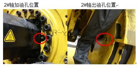 加油完成后,拆除 1#軸,2#軸,3#軸,5#軸加油口油嘴,所有排油口需打開,運動各關節