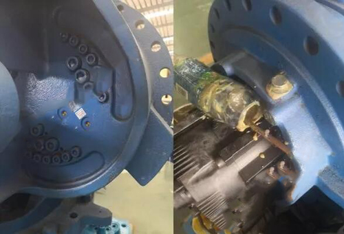 將機(jī)器人手動(dòng)調(diào)整到合適角度,拆開各軸進(jìn)出油嘴堵頭;