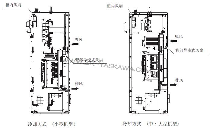 控制柜內(nèi)的風(fēng)扇和背面導(dǎo)管式風(fēng)扇在接通電源時(shí)轉(zhuǎn)動(dòng),所以請(qǐng)檢查風(fēng)扇是否轉(zhuǎn)動(dòng),以及感覺排風(fēng)口和吸風(fēng)口的風(fēng)量,確認(rèn)其轉(zhuǎn)動(dòng)是否正常。