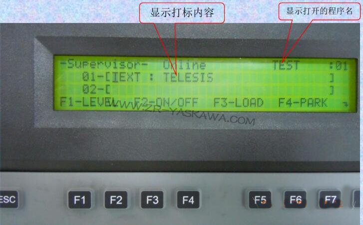 F1:LEVEL:用于選擇操作級別。開機后的默認為OPERATOR(操作員)級別,只能有部分功能可使用;按F1后再按F1,則進入SUPERVISOR(主管)級別操作,可以使用全部的功F2:ON/OFF LINE:按下則讓控制器和打標頭聯機(ONLINE),否則顯示未聯機(OFFLINE)F3:LOAD:裝入一個程序以便進行編輯或打標