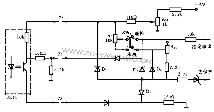一個可調的輸入信號。同時整定焊機的最大和最小輸出值。另外,由四個二極管組成的負邏輯或門電路將給定輸入電壓信號送到保護電路,當給定輸入因任一端斷線造成電位過低時,保護立即動作,將電源跳開。