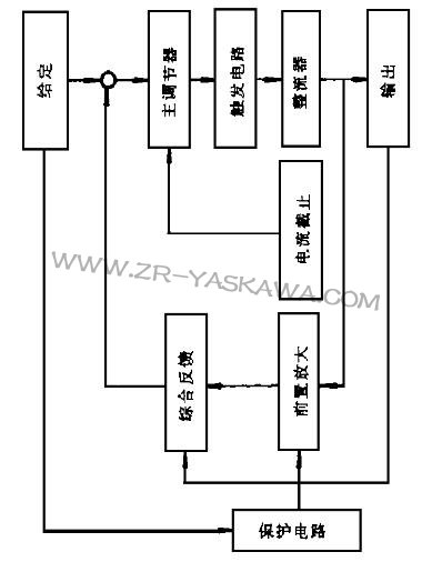 控制調節系統由控制板、觸發板和NA-5S操作箱構成。按其功能可分為給定、前置放大、綜合反饋、電流截止負反饋、主調節器、觸發電路和保護電路七大部分。圖2為焊機系統方框圖。