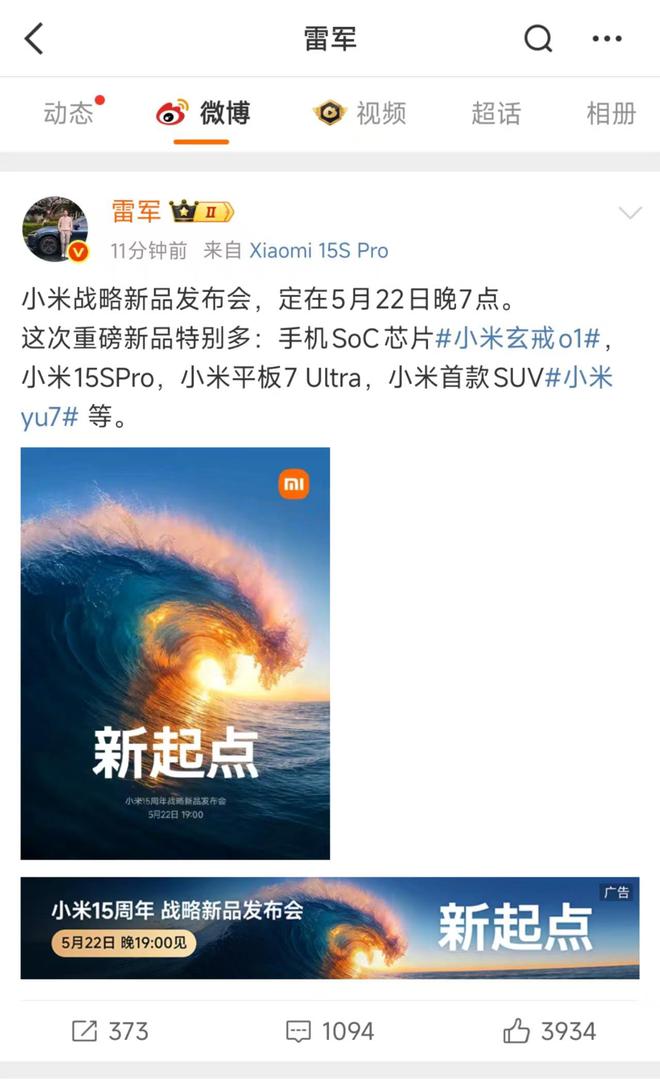 雷軍官宣小米發布會:首款SUVYU7將亮