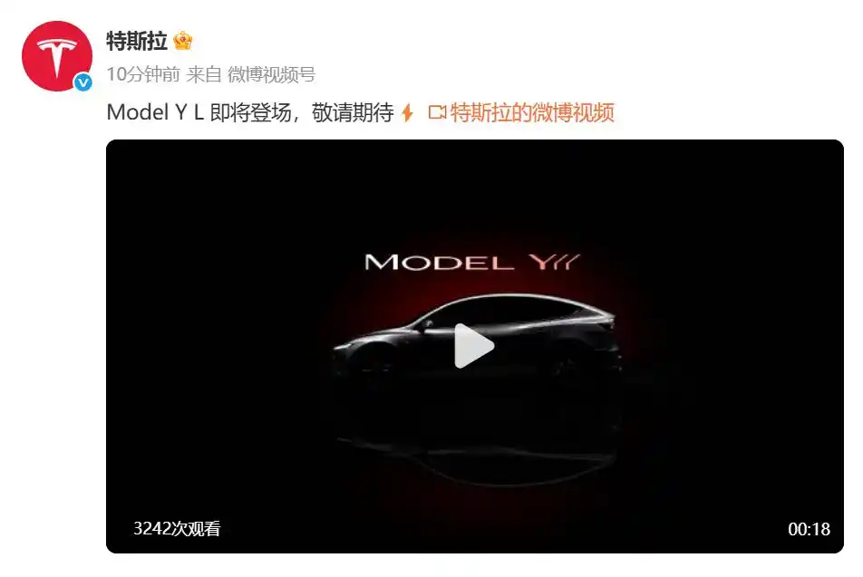 特斯拉官宣Model Y L車型即將登場(chǎng)