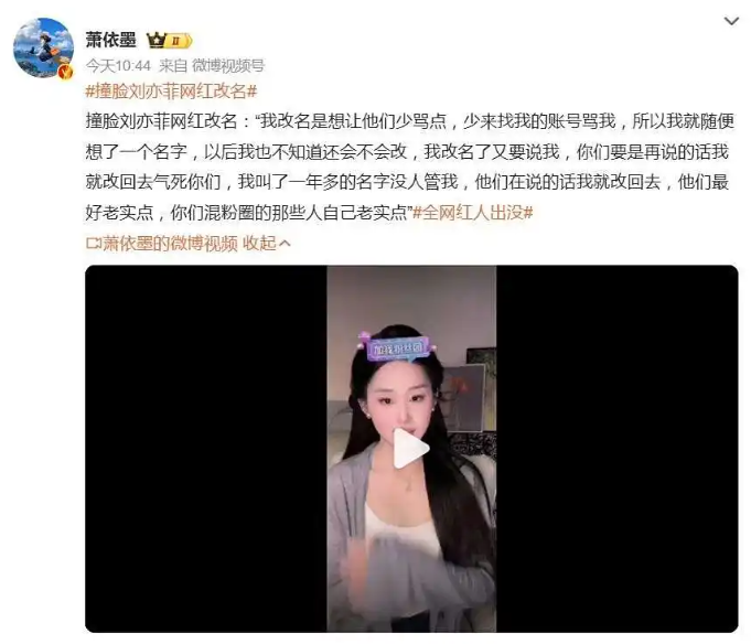 撞臉劉亦菲網紅“劉一菲”改名:想讓