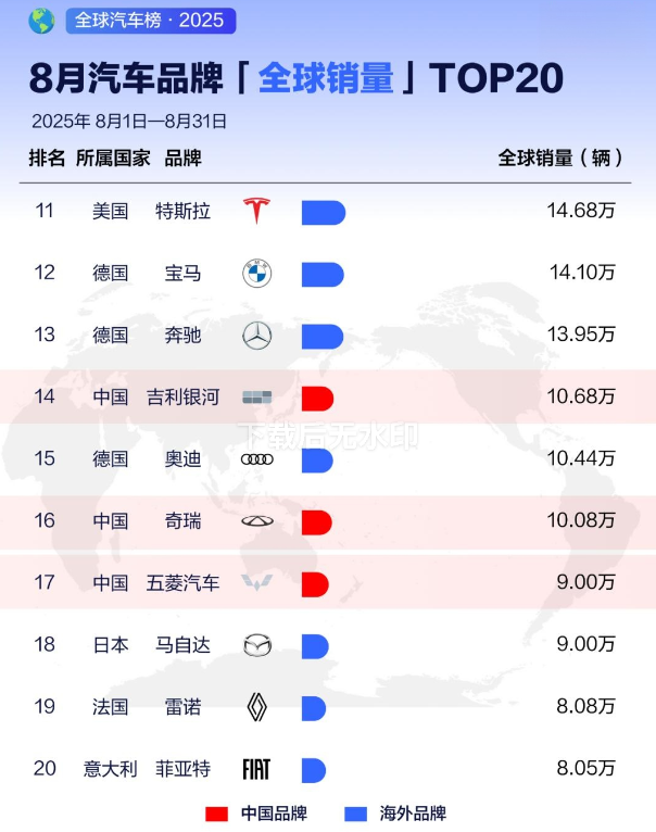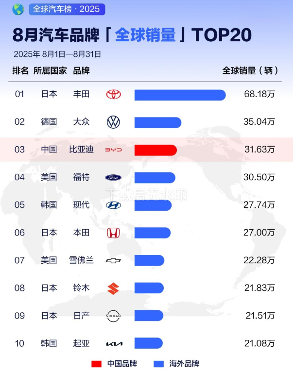 31.63萬輛!比亞迪8月銷量全球第三
